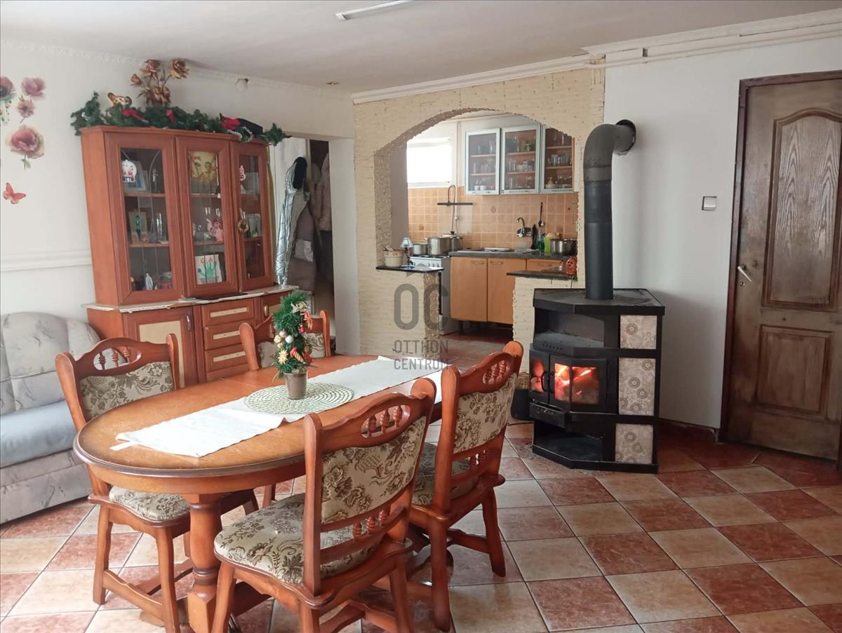 A ház teljes közműellátással rendelkezik: víz, villany, gáz, csatorna bekötve, így azonnal használatba vehető. a belső terek otthonosak, a fotók alapján a nappali mérete és a konyha jó kapcsolata kellemes családi életteret biztosít.
