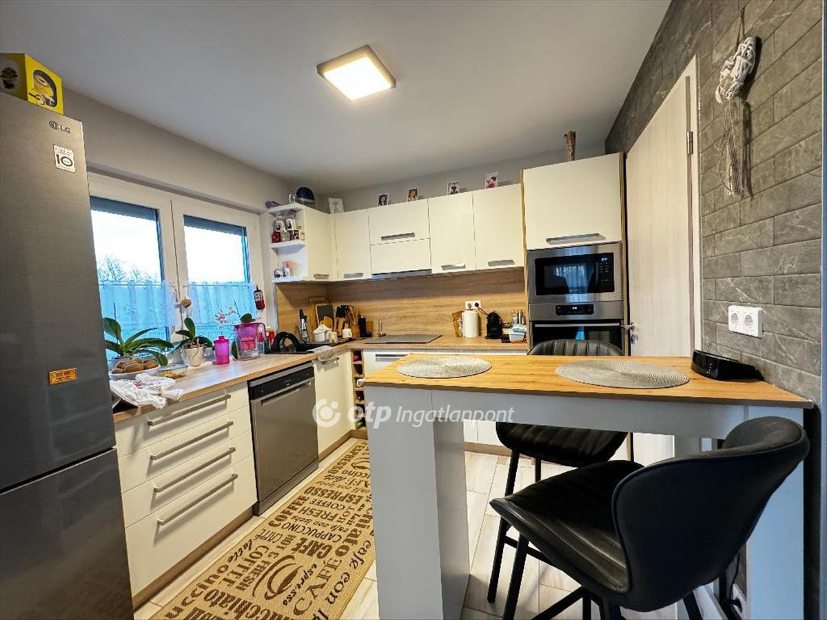 Eladásra kínálunk egy Exkluzív, 2020-ban épült új, könnyű szerkezetes családi házat - csodás birtokkal magakörül! Magas minőségű otthon várja új tulajdonosát Sobor településen, Magyarországon, Győr-Moson-Sopron Vármegyében. Ez a páratlanul stílusos és modern ingatlan minden igényt kielégít és az elegancia és a kényelem tökéletes harmóniáját nyújtja. Fedezze fel a prémium kivitelezés és kifinomultság magasztos érzését ebben a 97 négyzetméter nagyságú + terasz + autóbeálló - ingatlanban, mely ötvözi a prémium minőségű anyagokat és a legkorszerűbb technológiát. Az épület számos kiemelkedő jellemzővel rendelkezik, hogy biztosítsa a tökéletes otthoni élményt. a külső falakon 15 cm vastag hőszigetelés biztosítja a hatékony hőtartást, míg a zárófödémben 30 cm vastag hőszigetelés gondoskodik a tökéletes hangszigetelésről. a válaszfalakban pedig 10 cm vastag, kiváló minőségű szigetelést találunk. a külső hőszigetelés 15 cm vastag grafitos Dryvit rendszerű hőszigetelő vakolatrendszerrel van ellátva, amely hosszú távú védelmet nyújt a környezeti hatásokkal szemben. a tetőfedését pedig minőségi iko Cambridge típusú, térhatású bitumenes zsindelyek alkotják, melyek nemcsak tartósságot biztosítanak, hanem esztétikailag is lenyűgöző látványt nyújtanak. a fűtést és a melegvizet Bosch Tronic 3500 elektromos kazán szolgáltatja, amely kiváló hatékonysággal működik, és megbízható hőellátást biztosít az egész épületben. a padlófűtés minden helyiségben megtalálható, így a kellemes hőmérséklet mindig körülveszi önöket. a szobákban pedig elegáns laminált padló burkolatot találunk, míg a többi helyiségben igényes járólapot. a házon található napelem rendszer, melyről gyakorlatilag szinte költség nélkül üzemel. Energetikai besorolása aa+, mely kiemelkedő a mai újépítésű otthonok között is. 3X25 amper biztosítja egy hatalmas, külön bontott kismegszakítóval a gondtalan működést. a kapu elektromosan, távolról is nyitható. Az otthonba lépve az előtér fog bennünket, amelyből a közlekedőbe juthatunk. Innen jobbra található két külön nyíló szoba, melyek 10-11 négyzetméteres mérettel büszkélkednek. a szobák szemben helyezkedik el a tágas, 2 személyes épített zuhannyal ellátott fürdőszoba, melyben wc is helyet kapott, mellette pedig teljesen külön helyiségben található még egy wc. a közlekedő elején balra található a lenyűgöző 27 négyzetméteres nappali, mely egy légtérben kapcsolódik az étkezővel és a 9 négyzetméteres konyhával. a konyhából pedig egy 2, 4 négyzetméteres éléskamra nyílik, mely mögött megtalálható a nappaliból nyíló 4, 9 négyzetméteres háztartási helyiség, melyben található a kazán, mosógép, szárítógép, emellett kényelmesen elhelyezheti a mindennapi tárgyait. Telek: a teljes telekméret 8936 négyzetméter. Az ingatlanhoz tartozik egy lenyűgöző fedett terasz, amely tökéletes helyszínt biztosít a kikapcsolódásra és a vendégek fogadására, valamint egy 2025-ben épült fedett épület rész, melyet jakuzzi létesítésére építettek, külön figyelve a kényelemre, ugyanis a házból közvetlen kilépve szemben található. a kert pedig csodálatos lehetőségeket nyújt a szabadban való pihenésre és szórakozásra. Minden része tökéletesen megtervezett, varázslatos növényekkel telepített. Az év egész időszakában éke a háznak. Hátul pedig a veteményesek szerelmesei is megtalálják számításaikat, ugyanis egy új magas ágyás biztosítja a friss zöldségeket a mindennapokhoz. Utcafrontról befelé indulva található egy kényelmes, fedett kocsibeálló - elektromos garázsnyitóval, hogy autóját mindig biztonságban tudhassa. Megtalálható ezen kívül egy nyári konyha, amihez barkács műhely is tartozik. Ez az exkluzív ingatlan egyedülálló lehetőséget kínál a luxus és a minőség szerelmeseinek. Ne hagyja ki ezt a ritka alkalmat, és lépjen be az álmai otthonába. Vegye fel velünk a kapcsolatot még ma, hogy személyesen megtapasztalhassa ezt a lenyűgöző ingatlant és felfedezhesse a maga számára tartogatott kifinomultságot és kényelmet. Az ingatlan hitelezhető, tehermentes. Elhelyezkedés szempontjából tökéletes környezetben található, távol minden zajtól, kifejezetten ajánlom a természet szerelmeseinek. a házból kilépve 1-2 perc sétára található a Rába folyó, mely fürdési, túrázási, horgászási lehetőséget is biztosít, emellett a vadászati területek is remek adottságokkal bírnak. Elhelyezkedés szempontjából Győr városa 31 km-re található, emellett Pápa városa 27 km-re, munkalehetőség mindegyikben széleskörű, tömegközlekedéssel is megoldott. OTP Ingatlanpont teljes körű ügyintézéssel áll az eladók és a vevők rendelkezésére. a kínálatunkból választott ingatlan finanszírozásához kedvezményes hitelkonstrukciót kínálunk. Az adásvételi szerződés megkötéséhez igény szerint megbízható ügyvédi közreműködést biztosítunk, és segítséget nyújtunk az adásvételhez kapcsolódó ügyek intézéséhez is. Az ingatlanról készült alaprajz, illetve fényképfelvételek az Otp ingatlanpont szellemi tulajdonát képezik. FIX 3% lakáshitelre megvehető