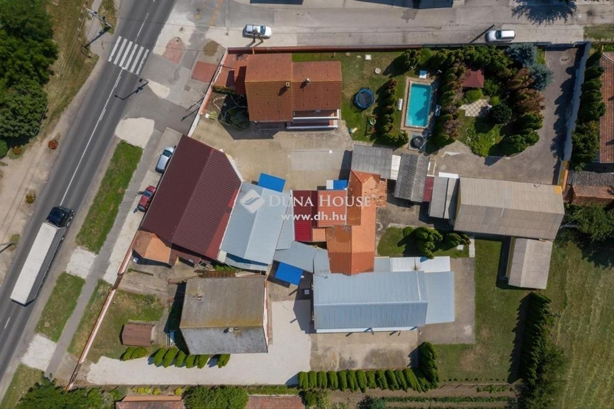 Az ipari ingatlan több részből áll és több irányból bejárható: összesen 1000 m2 összterületű ipari árammal ellátott összefüggő üzemépületet bejáróval, udvarral, felcsempézett üzem, raktár, 2 nagy és 2 normál raktár, több kisebb tárolóhelyiség, árukiadó épület és az egyik családi ház földszintjén található külön bejáratú mintabolt. a gondozott kertben úszómedence, jacuzzi, Botanikus kert található.
