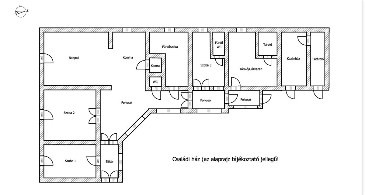 Az ingatlanban 3 hálószoba, egy légterű nappali és konyha, kamra, 2 wc, 2 fürdőszoba található. Az ingatlan hátsó folyosóján lévő szoba és zuhanyzó/wc külön lakrészként is használható és akár leválasztható, köszönhetően a hátsó bejáratnak.