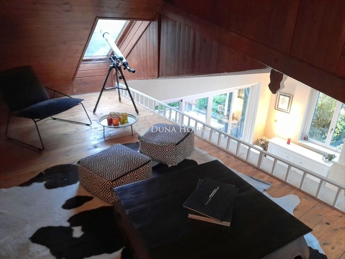 Eladó egy különleges egyedi kialakítású ház SolymáronSolymár csendes részén, rendezett zsákutcában kínáljuk megvételre ezt a páratlan hangulatú gondosan karbantartott családi házat, amely sok extrával rendelkezik. a tágas, napfényes lakótér modern elrendezésének köszönhetően egyszerre otthonos és elegáns. a ház kialakításának köszönhetően az 5 kényelmes háló, dolgozó, 4 fürdő elkülönítve kapott helyet a közösségi terektől. a világos, nagy ablakfelületekkel ellátott nappaliban a hideg napokon élvezheti a kandalló melegét, ami egyben egy tömbkályha is (energiatakarékos módon napokig biztosítja a meleget azután is, hogy a tűz kialudt). Az alagsori szinten elhelyezett bár és billiárdszoba tökéletes helyszín baráti összejövetelekhez, családi programokhoz, vagy egy kis esti kikapcsolódáshoz. a két nagyméretű zárt garázs akár 3 autó befogadására is alkalmas, mindkettőből közvetlen bejárási lehetőség van a házba. Ez a ház tökéletes választás mindazoknak, akik egy exkluzív, különleges hangulatú otthont keresnek a városhoz közel, mégis zöldövezeti környezetben. Ha felkeltette érdeklődését az ingatlan, keressen bizalommal.