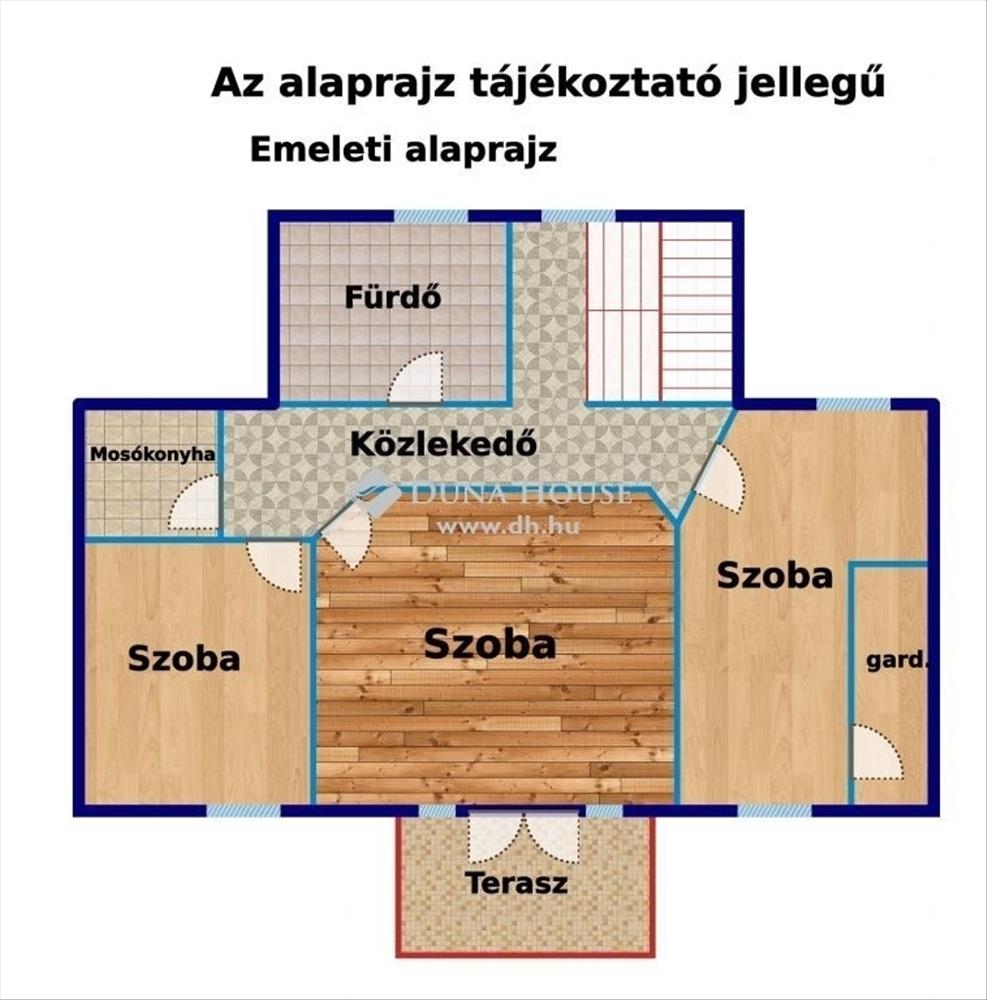 -Helyiségek: : Az ingatlanban egy tágas nappali, négy szoba, két fürdőszoba, gardróbszoba, mosókonyha, valamint fedett és nyitott terasz található. Az alaprajzon minden további részlet megtalálható.