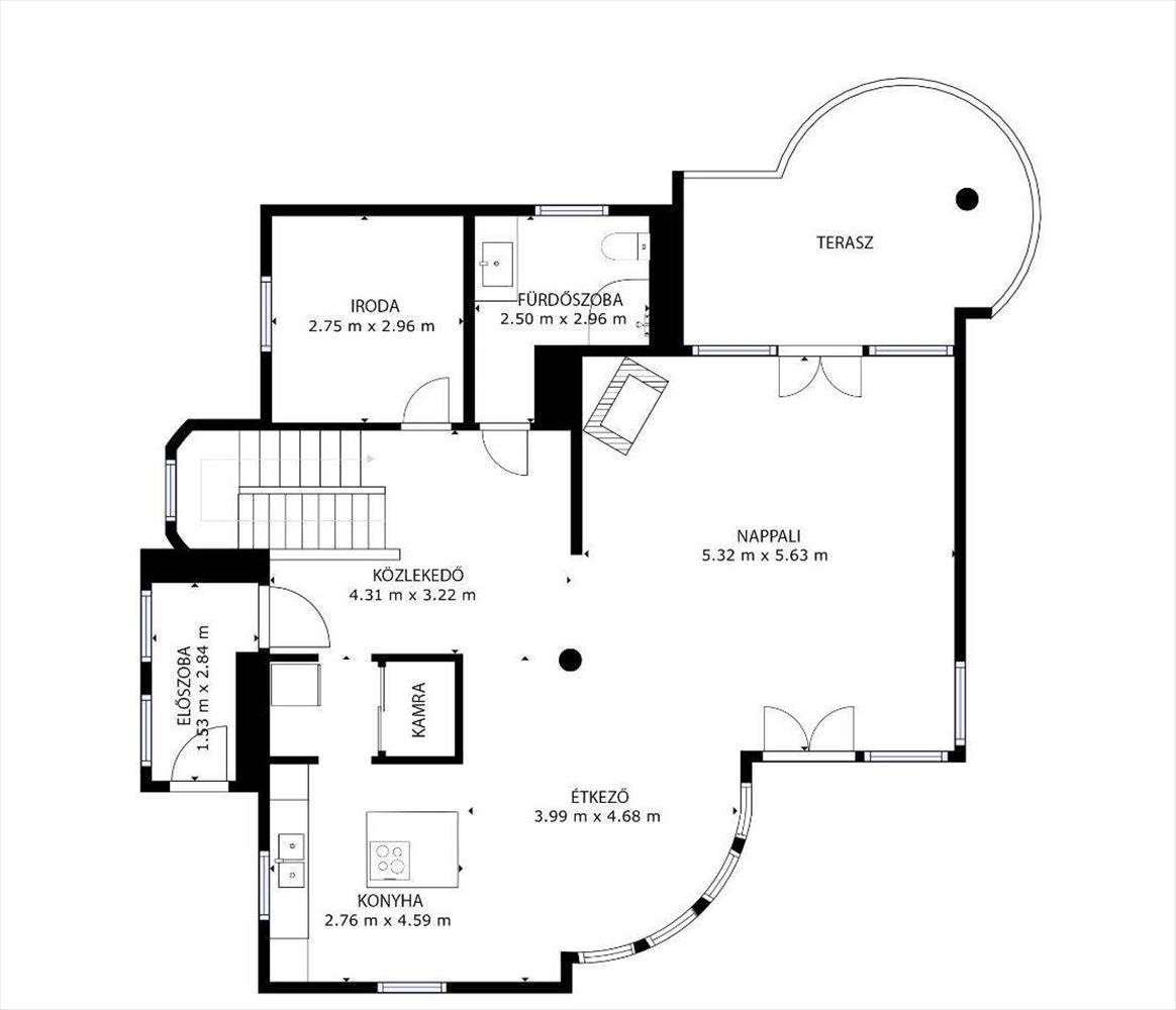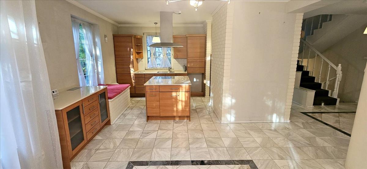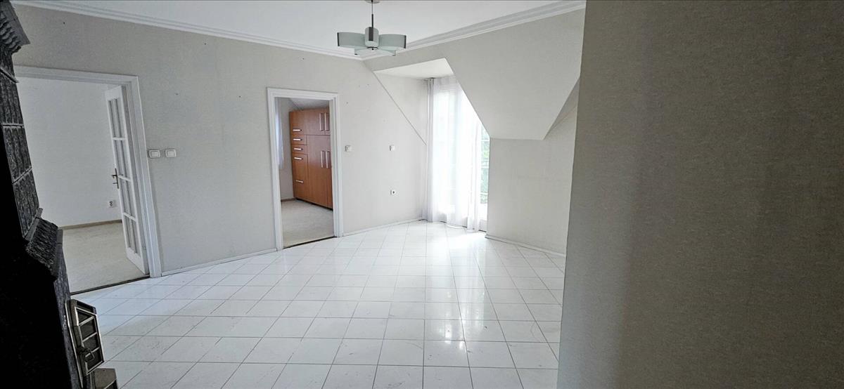 Az utca szinten hatalmas, tágas, csupa ablak- csupa fény konyha-étkező-nappali dupla nagy teraszokkal, cserépkályhával, közvetlen kertkapcsolattal, valamint egy dolgozószoba, és egy zuhanyzós fürdő található. Az emeleten egy újabb kis nappalit szintén cserépkályhával, 4 nagy hálószobát, és egy kádas fürdőszobát alakítottak ki a tulajdonosok. a tetőtérben, egy kb. 30 Nm-es gyerekjátszó helyiség áll rendelkezésre, amely természetesen bármi más is lehet. a szoba fűtött, a tető szigetelt.