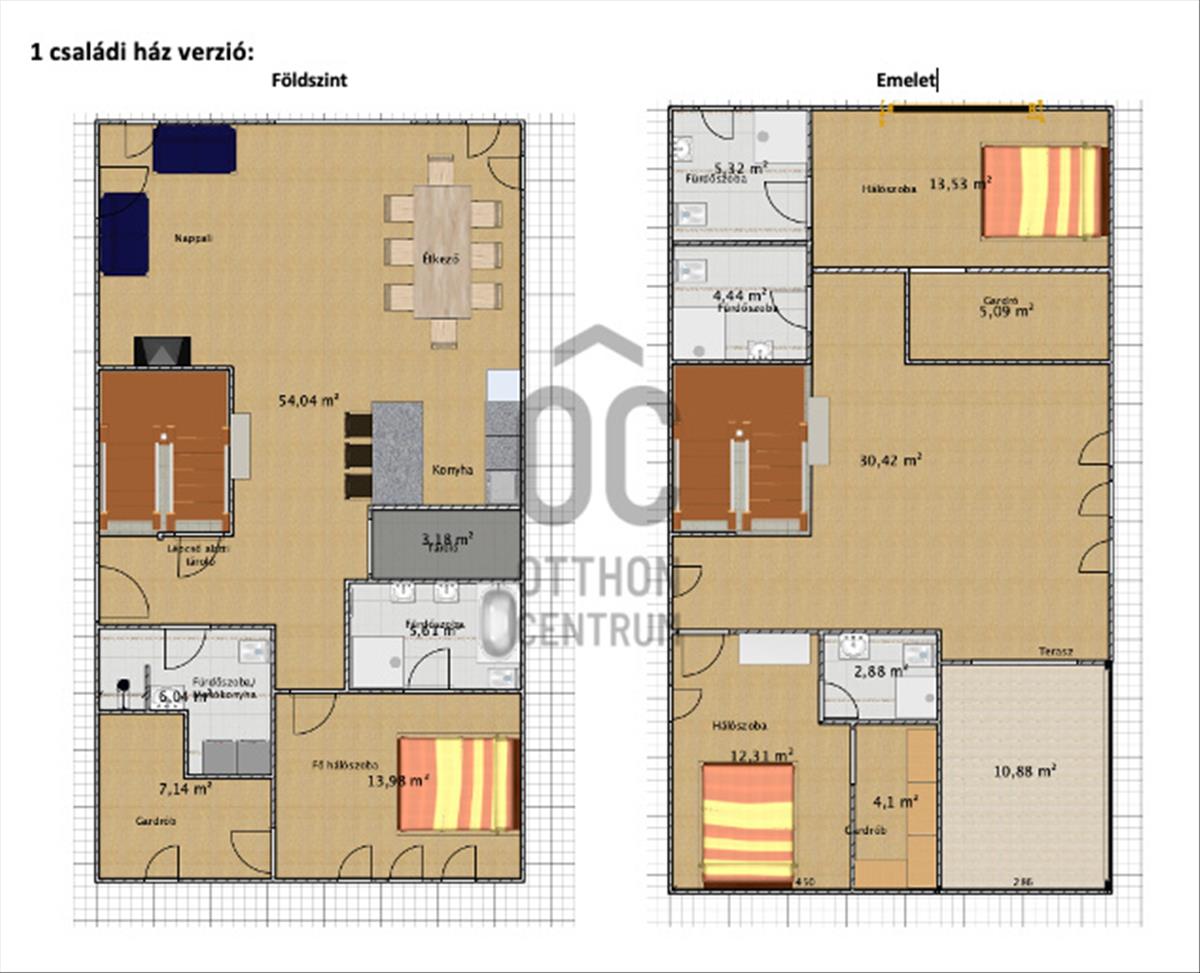 valamint mind a két szintre 30 nm körüli tágas nappali -konyha