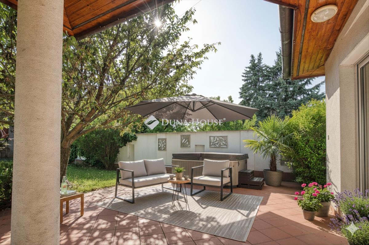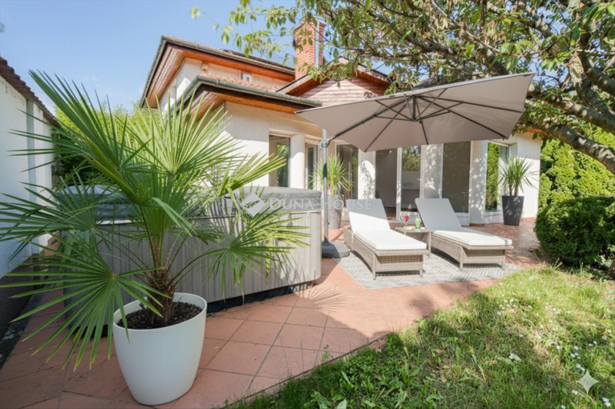 A kültéri élményt automata Rainbird öntözőrendszer, minőségi Semmelrock térkő és a fűthető szabadtéri jakuzzi teszi teljessé. a modern biztonságról riasztórendszer és elektromos redőnyök gondoskodnak.