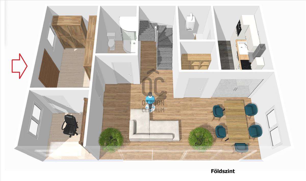 A ház belső elrendezése három szobával és két fürdőszobával rendelkezik, amely lehetővé teszi a kényelmes életvitelt, vagy akár a vállalkozás működtetését is. a tágas nappali világos és barátságos atmoszférát teremt, ahol a látogatók és az ügyfelek is jól érezhetik magukat. a 20 nm-es terasz és a 2 nm-es erkély pedig lehetőséget ad a szabadban való pihenésre, miközben a zöldre néző kilátásban gyönyörködhet.