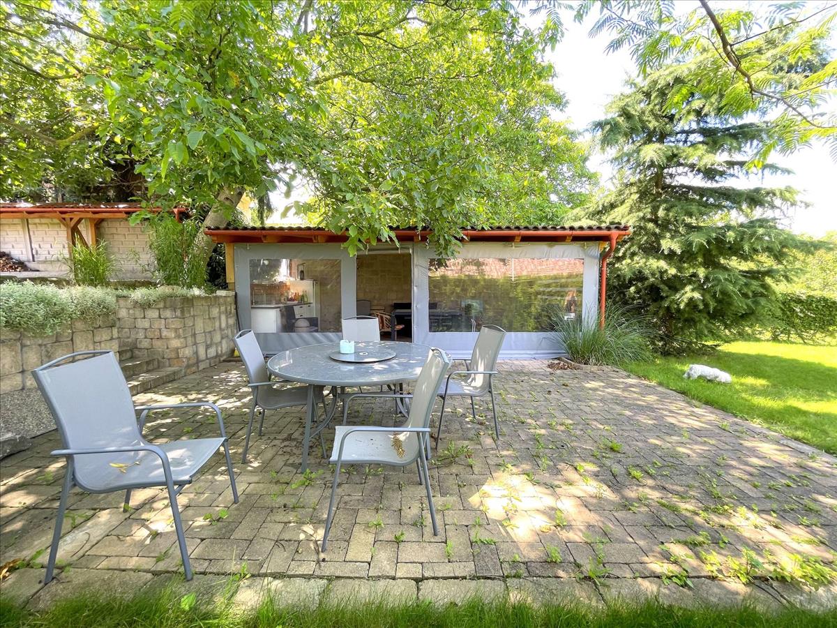 A kertről készített fotók önmagukért beszélnek. . . Jó szakember keze munkáját dicsérik. Beállt, kiteljesedett növényzet, égig érő tuják, süppedős gyepszőnyeg, nyári konyha, üvegház. a kertben 15 m mély kút van, amiről az öntözés biztosított. 1. 500L/óra.