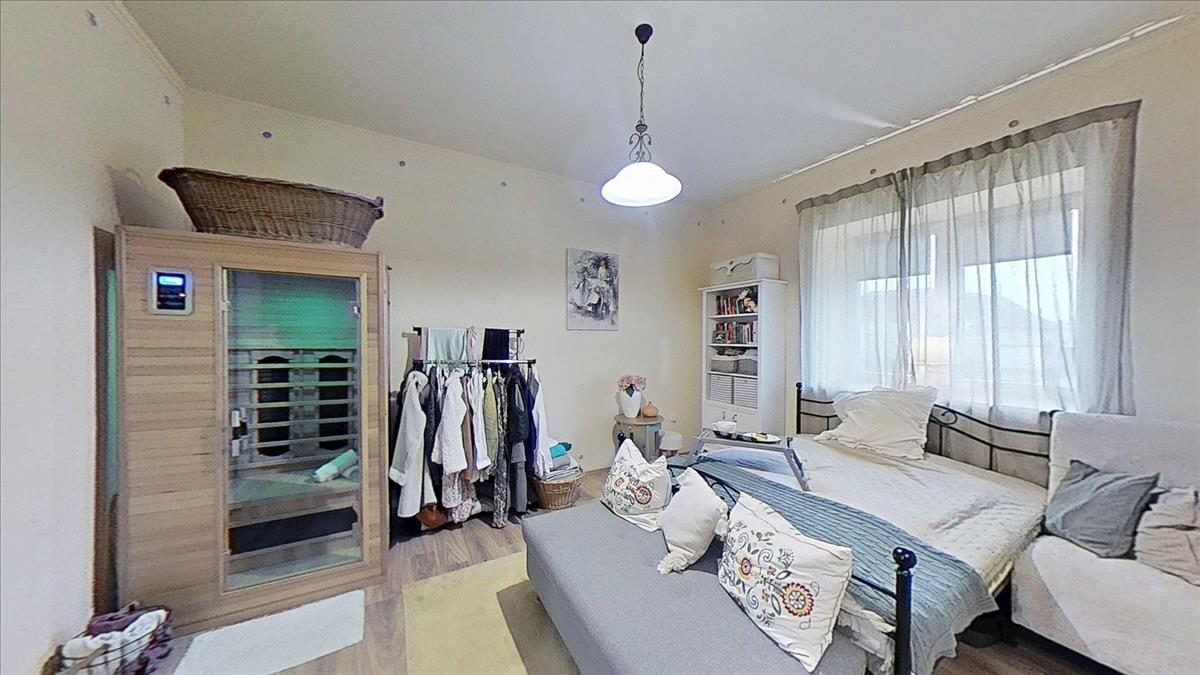 A ház földszintes, két bejárata van, melyek előtt egy 30 m2-es fedett terasz került kialakításra. Belső hasznos területe 85 m2, egészen egyedi, pazar belső bútorzattal, melyek a vételár részét képezik. Funkcióváltásra is alkalmas, hiszen 3 különálló szoba került kialakításra, és mindegyik rendelkezik saját fürdőszobával, ezen túl egy gardrób és egy előszoba alkotják a belső tereit. Ez utóbbi a későbbiekben épült az eredetileg L-alakú alaprajzú házhoz, a 2019-es felújítás alkalmával. Tehát az épület alkalmas jelenleg 2 vendégapartman kialakítására is, amennyiben valaki befektetési szándékkal vásárolna.
