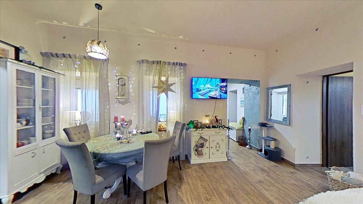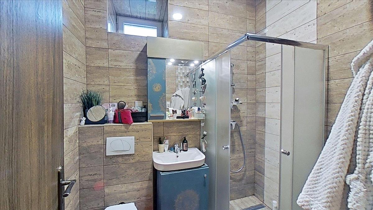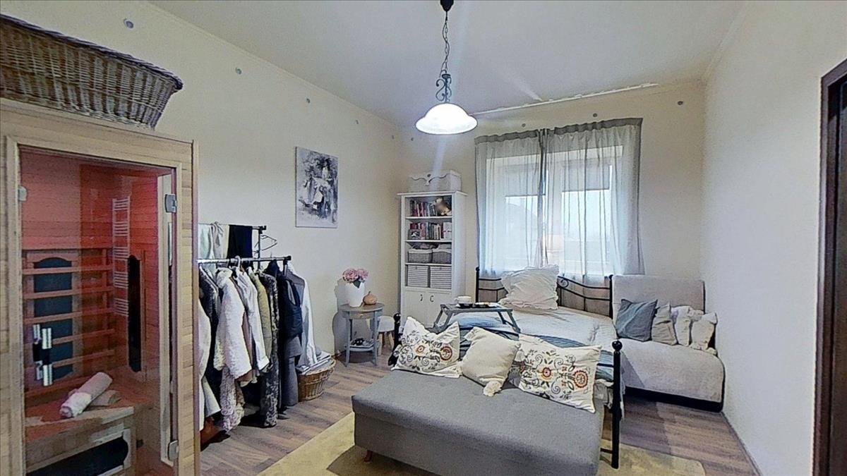 A ház földszintes, két bejárata van, melyek előtt egy 30 m2-es fedett terasz került kialakításra. Belső hasznos területe 85 m2, egészen egyedi, pazar belső bútorzattal, melyek a vételár részét képezik. Funkcióváltásra is alkalmas, hiszen 3 különálló szoba került kialakításra, és mindegyik rendelkezik saját fürdőszobával, ezen túl egy gardrób és egy előszoba alkotják a belső tereit. Ez utóbbi a későbbiekben épült az eredetileg L-alakú alaprajzú házhoz, a 2019-es felújítás alkalmával. Tehát az épület alkalmas jelenleg 2 vendégapartman kialakítására is, amennyiben valaki befektetési szándékkal vásárolna.