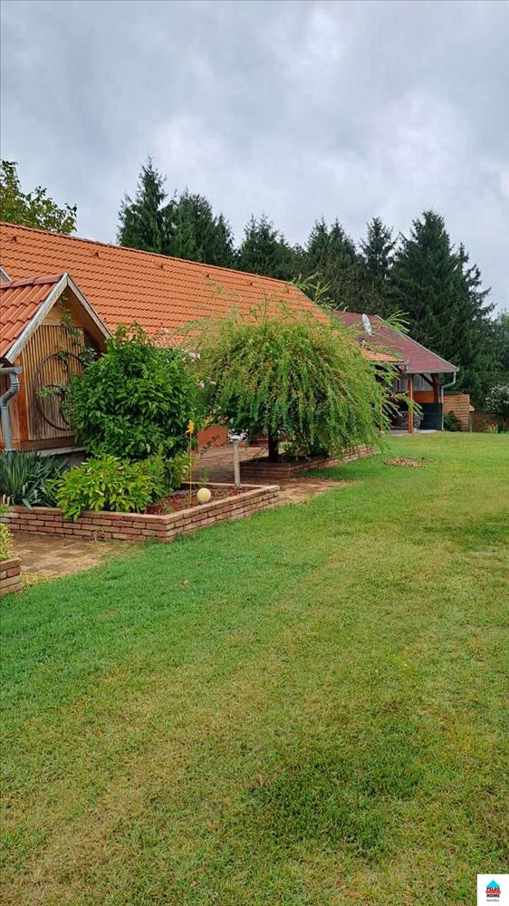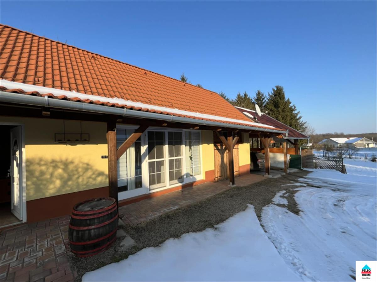 Im ruhigen Dorf Somogysimonyi, an der Grenze der Komitat Zala und Somogy, steht dieses wunderschön gepflegte und elegante Einfamilienhaus zum Verkauf. Die Wohnfläche beträgt 143 m² und ist in zwei separate Wohneinheiten aufgeteilt. Das Haupthaus verfügt über ein Wohnzimmer, moderne Einbauküche, Esszimmer, Schlafzimmer, Flur und ein Badezimmer (wc + Dusche). Das separate Gästeapartment bietet Badezimmer, eine offene Wohnküche und Schlafzimmer. Zum Anwesen gehören außerdem ein separater Keller, Werkstatt, Abstellräume sowie eine überdachte Terrasse mit Grill. Beheizt wird das Haus mit Gaszentralheizung, Kunststoff-Wärmedämmung, neuem Dach, 10 cm Außendämmung, Klimaanlage und hochwertiger Innen- und Außenverkleidung. Anschlüsse: Wasser, Gas, Strom, Abwasser, Internet etc. Das Grundstück (2163 m²) ist großzügig geschnitten und komplett umzäunt! Überdachter Parkplatz für vier Autos, 8000-Liter-Regenwassertank (! ), Brunnen, separate 20 m² große Werkstatt – und all das mit einer traumhaften Aussicht! Idyllisches Dorfleben, Sicherheit, Ruhe… Besichtigung nur nach vorheriger Absprache! Weitere Informationen finden Sie hier!