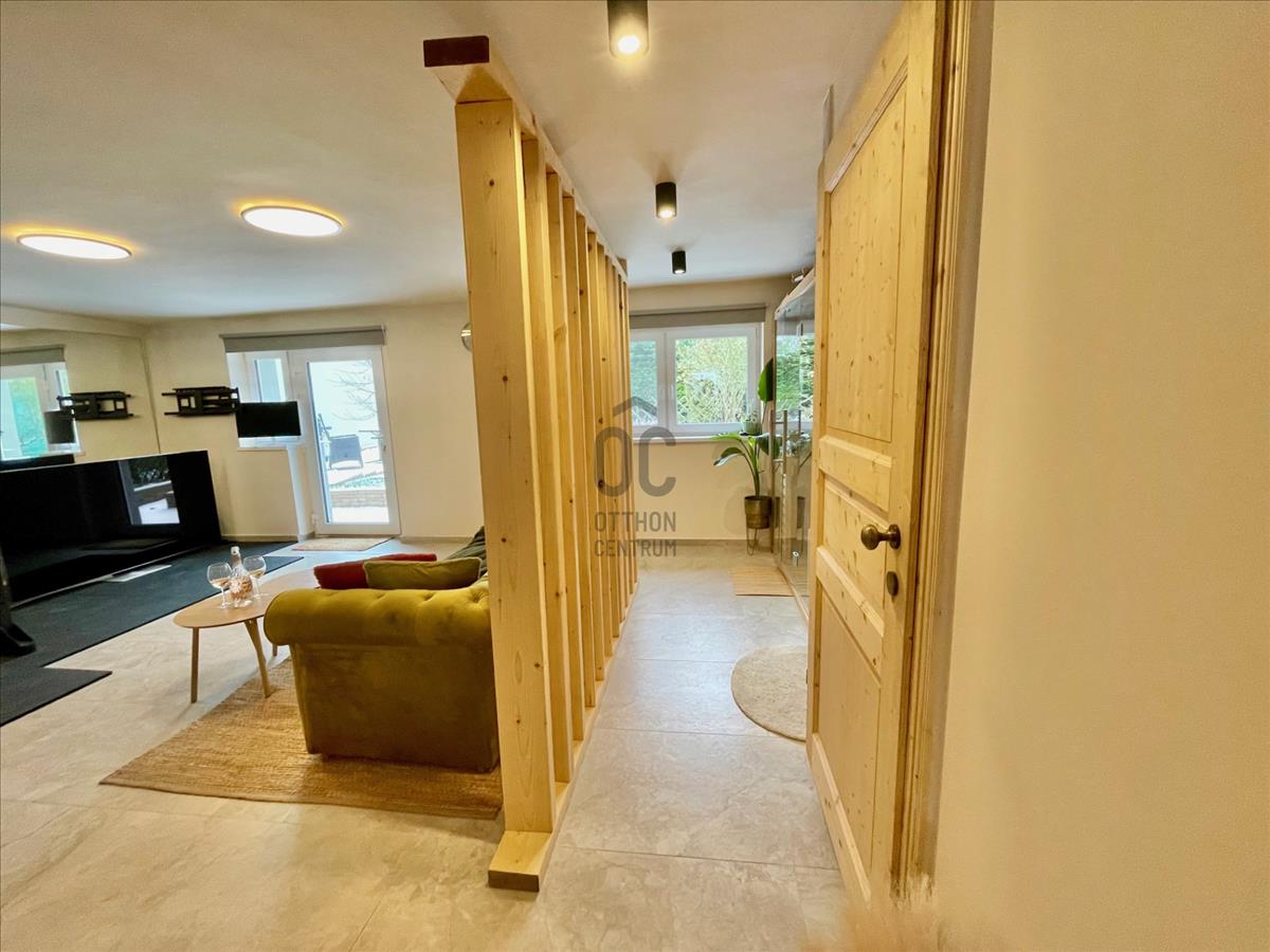• Kertkapcsolat: a nappaliból közvetlen kijárás nyílik a gondosan tereprendezett, privát kertbe, ami ideális helyszín családi összejövetelekhez. a víz és a villany kivezetve a kertbe.