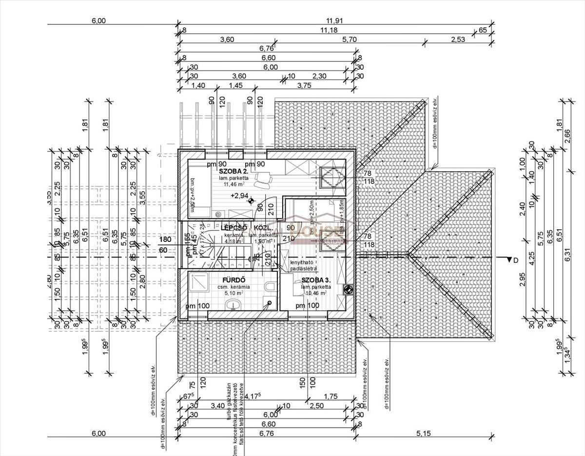 - Fűtése: kondenzációs gázkazán + nappaliban kandalló előkészítés + emeleti szobákban klíma