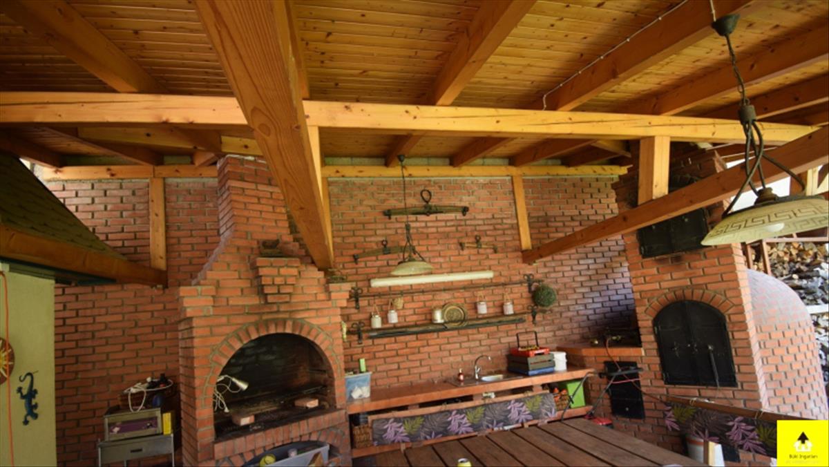 különálló, kis épület nyári konyhával, téglából épített grillsütővel és fedett kiülővel