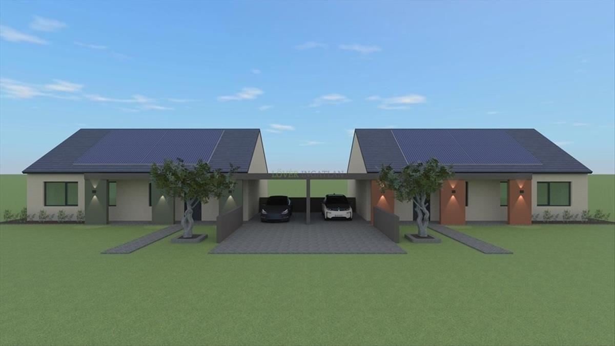 Soprontól 10 perc autóútra Sopronkövesden a Franciska lakóparkban eladó egy 939 nm-s saroktelken épülő földszintes tégla ikerház mindkét fele. a házak a fedett autóbeállóval érnek össze, igy önálló házként funkcionálnak ( telkek egymástól elválasztva). a lakórész hasznos területe : 85 nm + 30 nm fedett előtér és beálló. a házban 3 hálószoba, amerikai konyhás nappali, 2 fürdőszoba ( egyik kádas, másik tusolós), vendég, előtér lesz kialakítva. a házhoz kapcsolódik egy 11 nm-s fedett tornác, 15 nm-s térkövezett nyitott terasz és egy 20 nm-s fedett gépkocsibeálló ( elektromos autó töltési lehetőséggel). Ablakok műanyagok, elektromos vezérlésű redőnnyel ellátva. Fűtés: padlófűtés hőszivattyús megoldással. a házak kulcsrakész állapotban, alap tereprendezéssel, bekerítve kerülnek átadásra 2025. Decemberében. Napelem előkészítést az ár tartalmazza ( felszerelés megbeszélés kérdése). CSOK plusz, kedvező kamatozású hitel igényelhető. Válaszfalak még módosíthatók.Osztrák határátkelő ( Nikitsch) 2 km-re, m85 lehajtója 3 km-re található, Sopron 10 perc alatt elérhető.