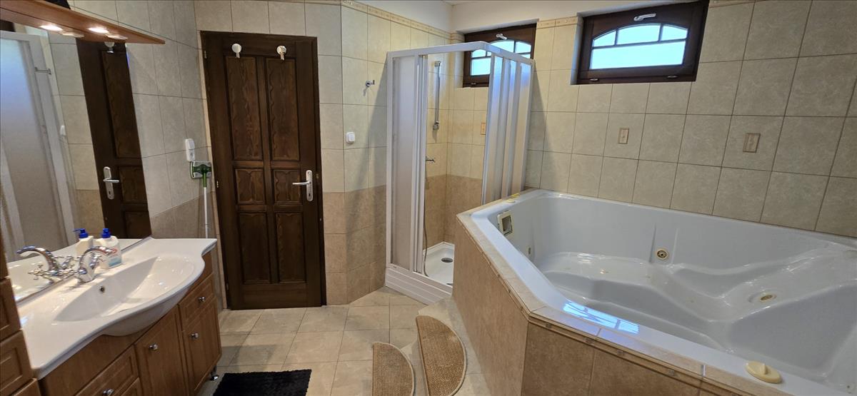 valamint az egyik fürdőszoba, mosdó. Az étkezőből jutunk ki az oldalsó, panorámás teraszra és