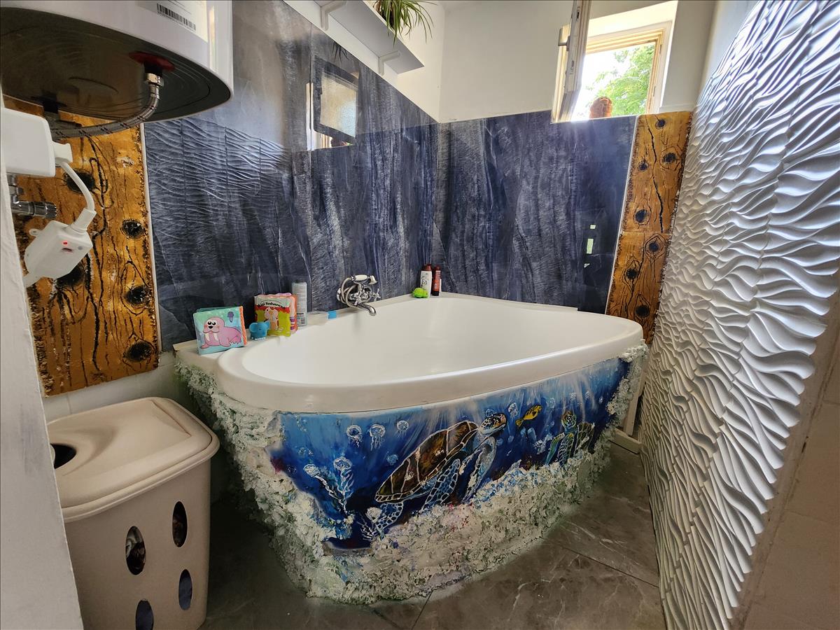 A ház fatüzelésű kandallóval fűthető, a meleg vizet elektromos bojler biztosítja. a szennyvíz elvezetése hálózatra kötött, a gázközmű telken belül található. 5 Kw-os napelemrendszer.