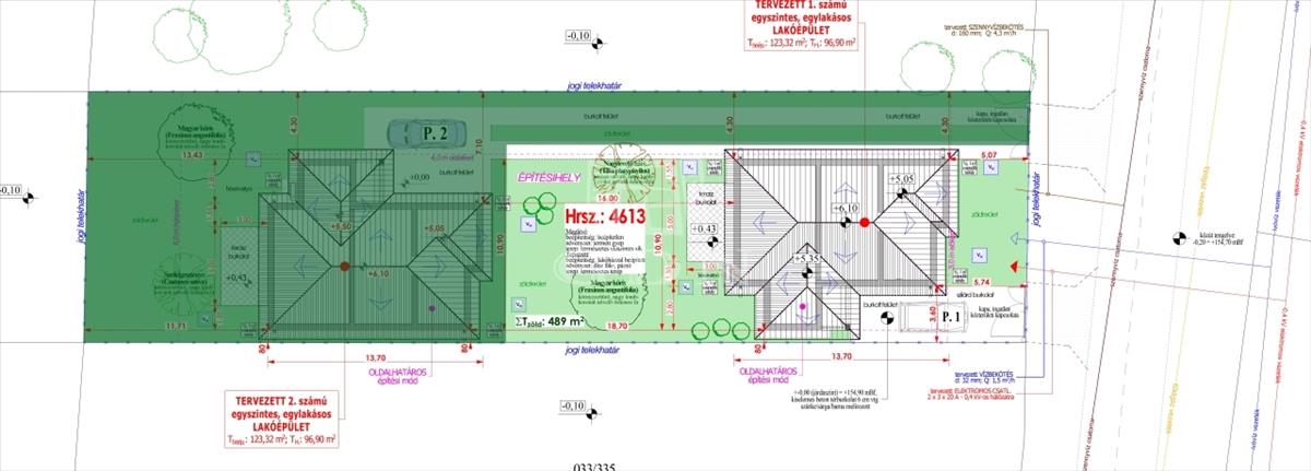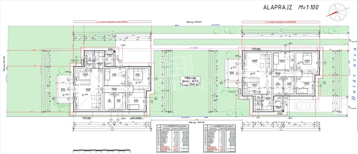 Az első ingatlan 438 m2-es kizárólagos használatú telekrésszel kerül kialakításra. Vételára: 69. 900. 000. - Ft.