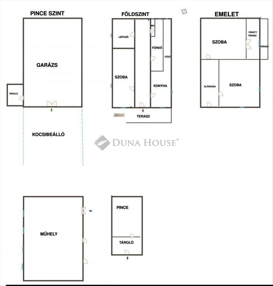 Pince, garázs és több tároló helyiség