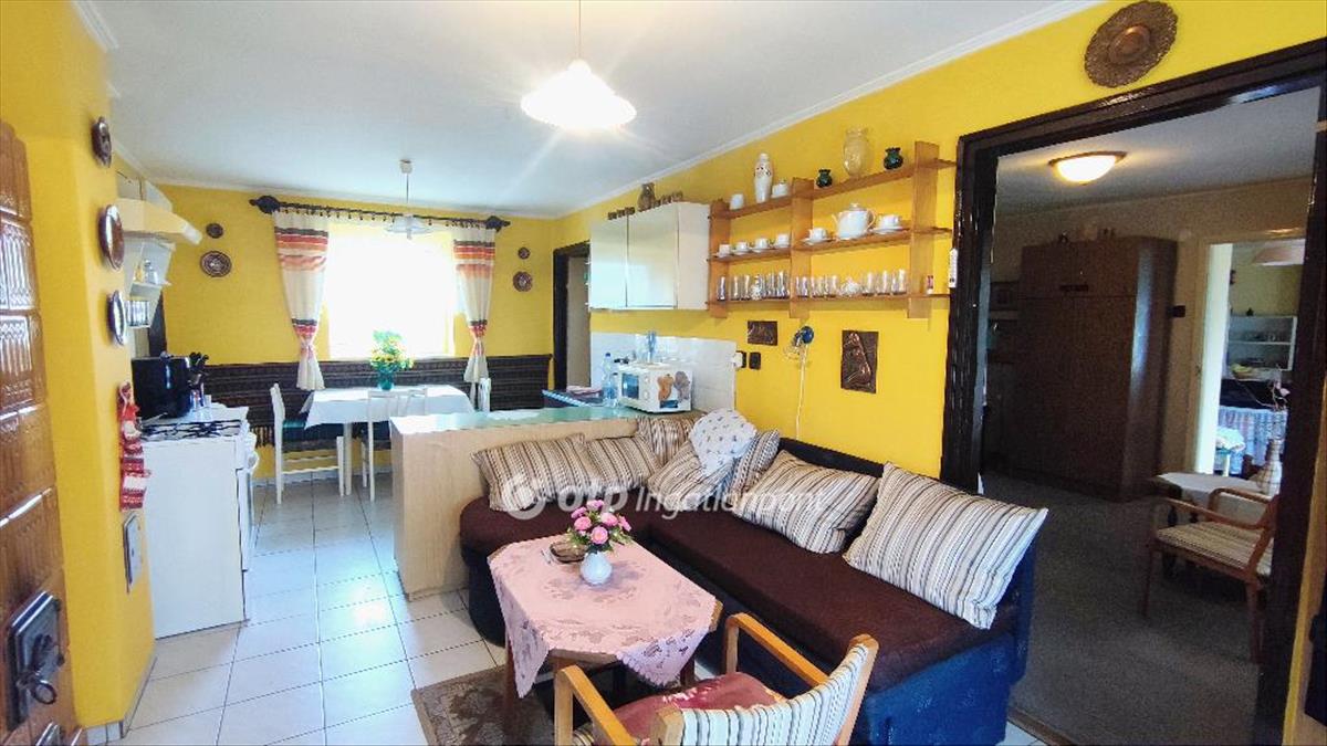 A nagyobb részben nappali, étkezős konyha, két hálószoba, kamra, fürdőszoba és előtér található. a később, mintegy két évtizede hozzáépített kisebb lakóegység egy légterű, saját konyhával, fürdővel és szoba-nappalival rendelkezik, így teljesen önálló használatot tesz lehetővé. a fűtésről cserépkályhák gondoskodnak, a meleg vizet villanybojler biztosítja. a közművek elérhetők, a gáz pedig az utcáról bevezethető.