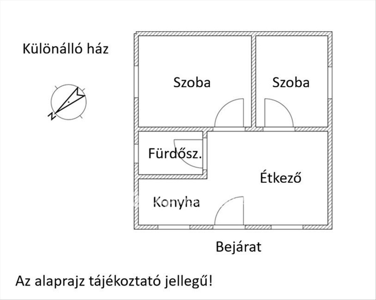 A telken egy különálló, kb. 32 m2-es lakóépület található, amely: