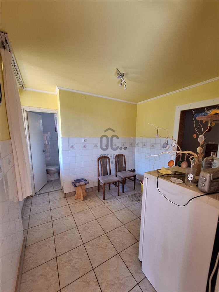 A második ingatlan kicsit kisebb 65 nm -es. Ebben található kettő szoba egy nappali, konyha, fürdőszoba, szintén költözésre alkalmas jó állapotú. Közművekkel ugyan úgy rendelkezik itt a fűtés az cserépkályhával megoldott.