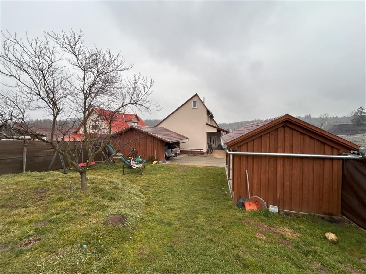 A kovácsoltvas kerítésen belépve elektromos kapun keresztül érkezünk a térkövezett, széles udvarra, ahol egy garázs (elektromos kapuval) és további három autó számára fedett beálló biztosít parkolási lehetőséget. a gondozott kertet fák és fenyők szegélyezik, egy melléképület, amin szintén új tető van, pedig további tárolási vagy hobbi célokra használható.