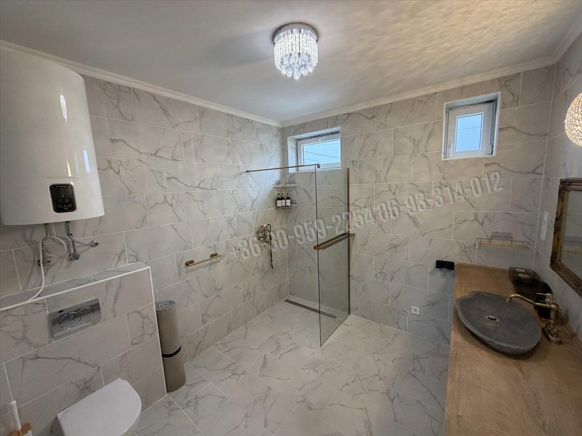 -Fürdőszoba: vadonatúj, tusolós kialakítás, melegvíz villanybojlerrel