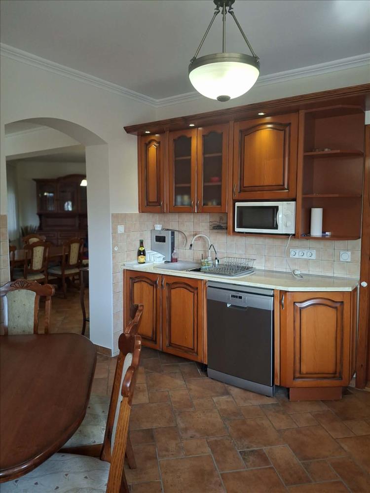 A földszinten egy tágas nappali-étkező, konyha, két szoba, egy mosókonyha és egy fürdőszoba van két különálló wc-vel, az emeleten két szoba, egy fürdőszoba wc-vel kis nappalival. a tetőtérben egy szauna található. Az étkezőből kilépve egy kellemes teraszra érkezünk, melytől pár lépéssel egy hangulatos pince tárul elénk. a házból egy ajtóval nyílik a garázs. Az emeletre tömör fából készült lépcsőn juthatunk fel. a nappalit egy csodás cserépkályha teszi még otthonosabbá. Az épületben riasztó-és kamera rendszer működik. Napelem rendszer gondoskodik a költséghatékonyságról. Az ingatlan tehermentes és azonnal költözhető