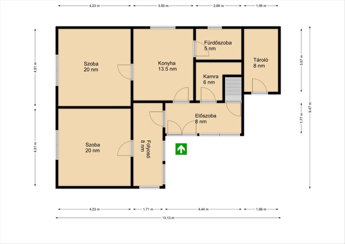- a családi ház hasznos alapterület 83 nm , az ingatlan mellett néhány gazdasági épület is található.