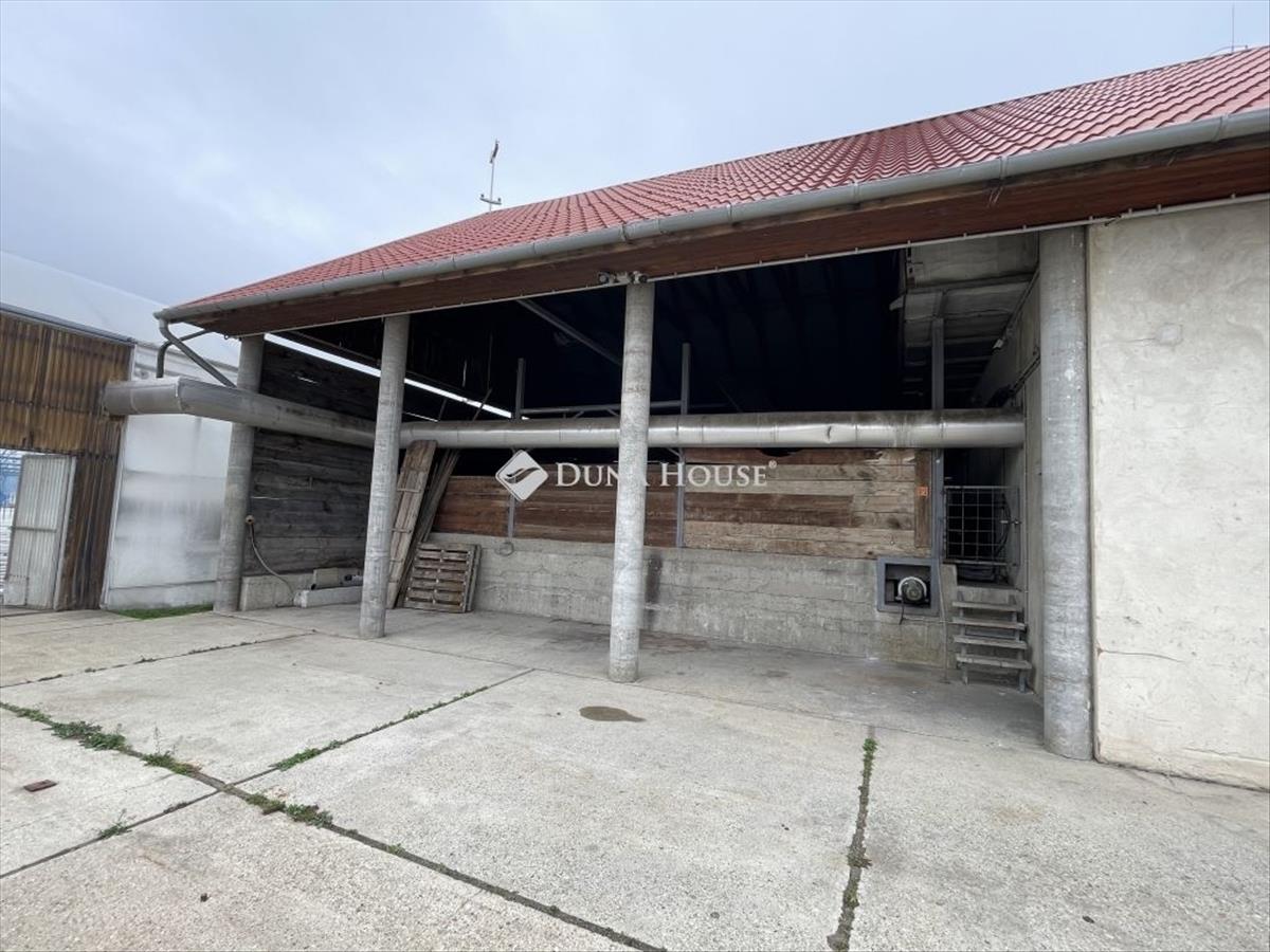 Téglaépület: 33×11 m, manipuláló tér, 23 raklapos hűtő, szociális helyiségek, tetőtérben 3 szoba, fürdő, konyha (120 m²)