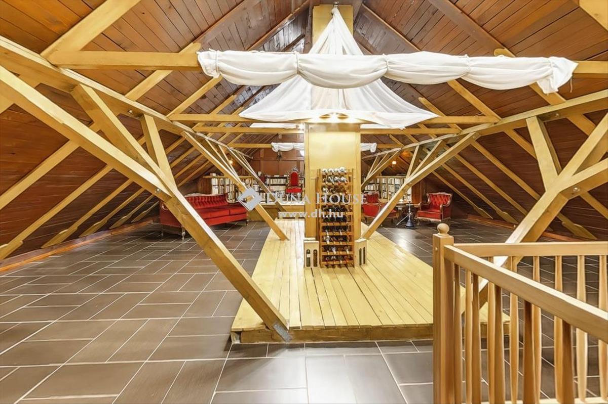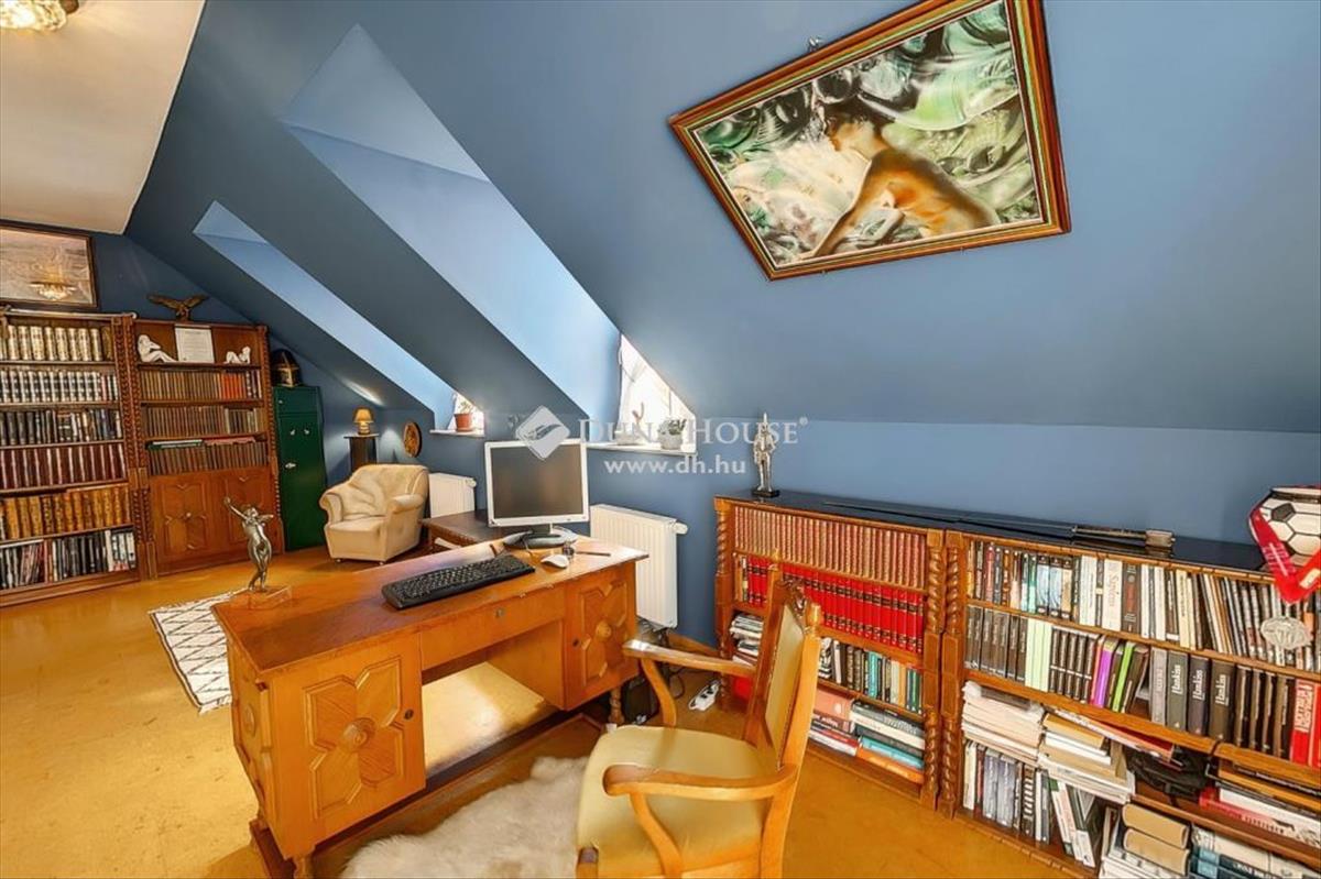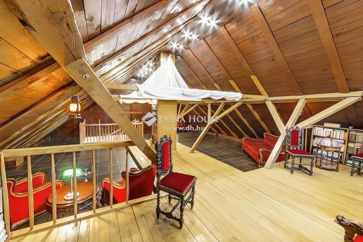 A második emeleten a tetőtér beépített, és a villa legnagyobb közösségi terét szolgáltatja több mint 100 m2 nagyságú területével, ahol 150” méretű vetítős, 5. 1 Surround házimozirendszer került beépítésre, valamint beépített könyvszekrény is található itt, ahol még egy nagyobb könyvtári gyűjtemény is elfér. Ennek megfelelően a tetőtér egyaránt alkalmas a legkisebbek számára játékra, a nagyobbak számára beszélgetésre vagy hangulatos időtöltésre, hiszen az ebben a helyiségben rejlő lehetőségeknek csak a fantázia szab gátat.