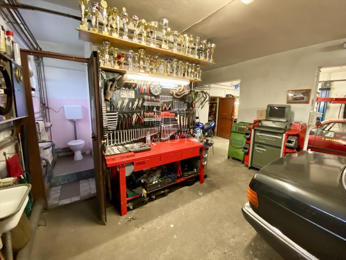 A műhelyben: ipari áram, 3 fázis, kiépített levegő rendszer, 2 db csápos emelő, gumiszerelő gépek, szerszámok.