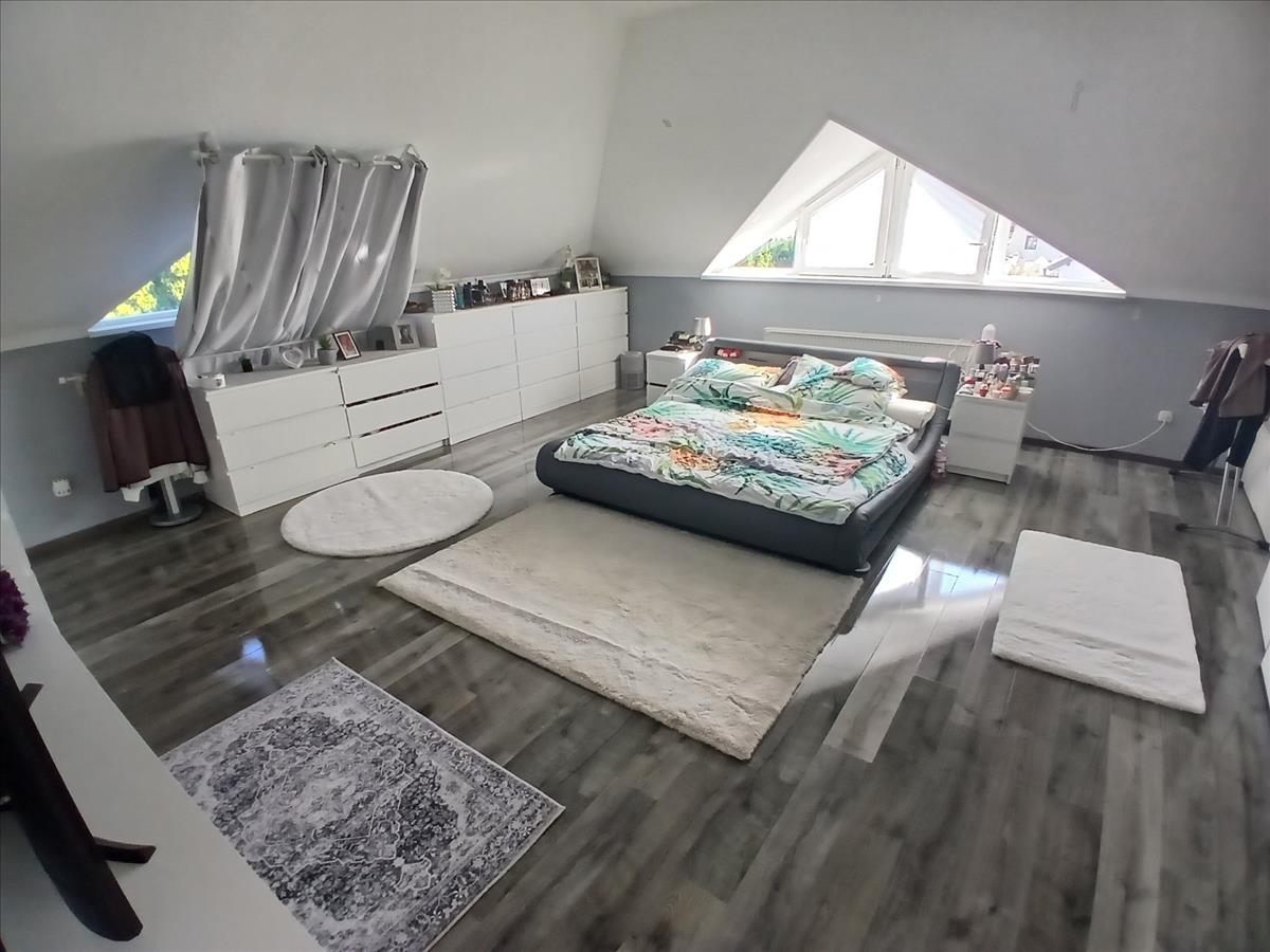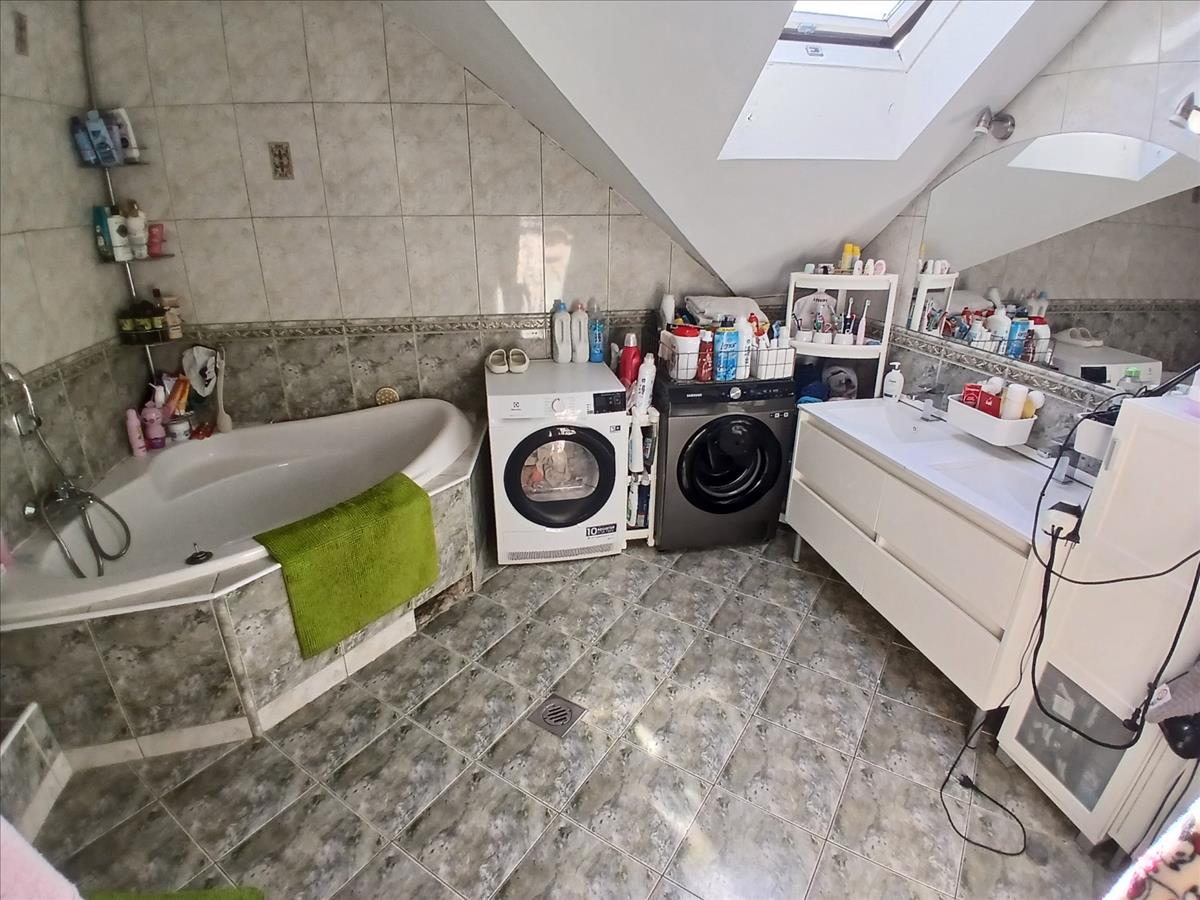 Alsó szinten nappali mellett szoba, emeleten 4 db szoba található. Nagy méretű fedett terasz és emeleten erkély található. Padlófűtés és radiátor kombinált fűtési rendszer. Hőszigetelt műanyag nyílászárók REDŐNYÖK/SZÚNYOGHÁLÓ menyezeti spotlámpás világítás, beépített konyhabútor konyhagépek.