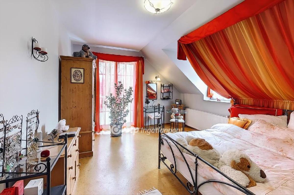 A nappaliból díszlépcső (önmagában is műalkotás) vezet a felső szintre, innen érhető el az összes emeleti szoba. Az 5 hálószoba, 2 fürdőszoba és 2 gardrób egyenlő arányban van elosztva a ház nyugati és keleti oldala között, így akár egy többtagú család is elegendő életteret talál a házban és gond nélkül különválik, vagy több vendég is elhelyezhető. Egyidejűleg. Minden hálószoba erkélyes? Négyből a déli, míg az ötödik saját északi erkéllyel rendelkezik.