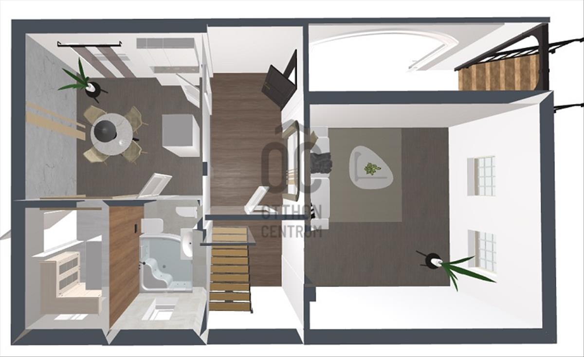 - Tetőtér: 34 (49) m²– a fürdőszoba kialakítása előkészítve, a vízállás kiépítve. a szobákban tölgyfa parketta.