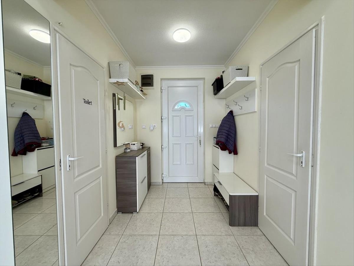 A házba egy új, 5 pontos biztonsági zárral ellátott műanyag bejárati ajtón léphetünk be. a belső terek elrendezése rendkívül praktikus: egy tágas nappali, két hálószoba, gépesített konyha, ablakos kamra (spejz), fürdőszoba, különálló vendég wc, előszoba és egy háztartási helyiség kapott helyet.