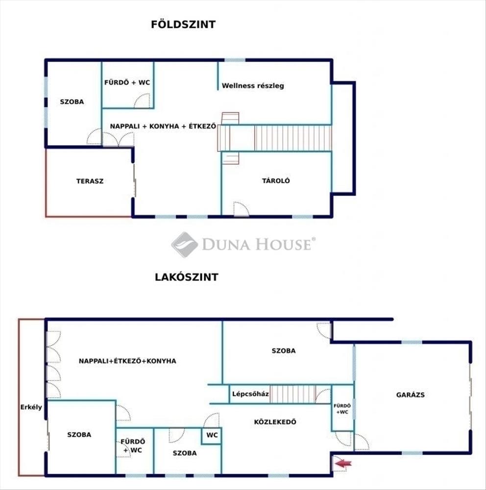 Szintek: földszint, emelet, galéria