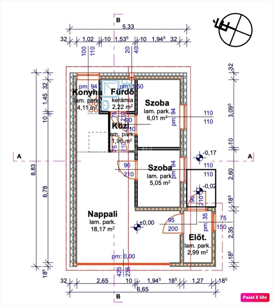 2006-Ban készült építési engedélyezési terv, ami közel 150 nm-es ingatlan felépítését engedi.