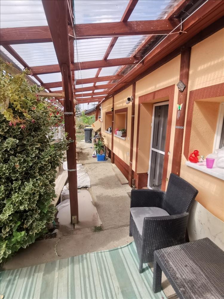 - Emellett a ház mellett teljes hosszában átlátszó polikarbonát előtetőt kapott ami több szempontból is praktikus