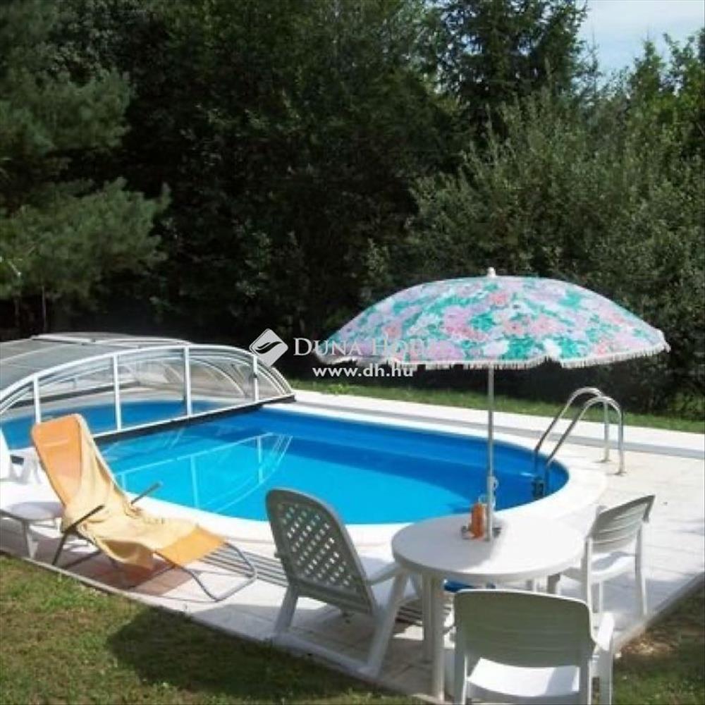 Az árnyat adó fák szegélyezte udvaron a meleg nyári napokon igazi felfrissülést jelenthet megmártózni a vendégházhoz tartozó úszómedencében ( 4 x 7 m). a medence polisztirol fedésű és víztisztító gépészettel felszerelt.