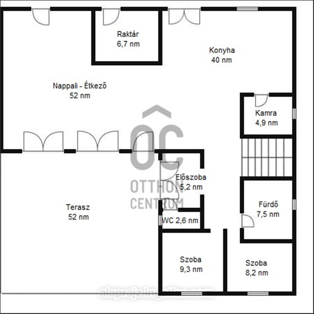 A befejezésre váró ház a tervek szerint kétszintes. Az alsó szinten hatalmas teraszról jutunk az előszobába, ahonnan beljebb haladva a közel 100 négyzetméteres amerikai konyhás nappaliban találhatjuk magunkat. a földszinten kapott helyet továbbá két szoba, kamra, fürdőszoba és egy külön wc. Az emeleten 4 szoba, fürdő és szintén egy wc kap helyet a tervek szerint, de a végleges kialakítása gazdag fantáziájú, új tulajdonosára vár.
