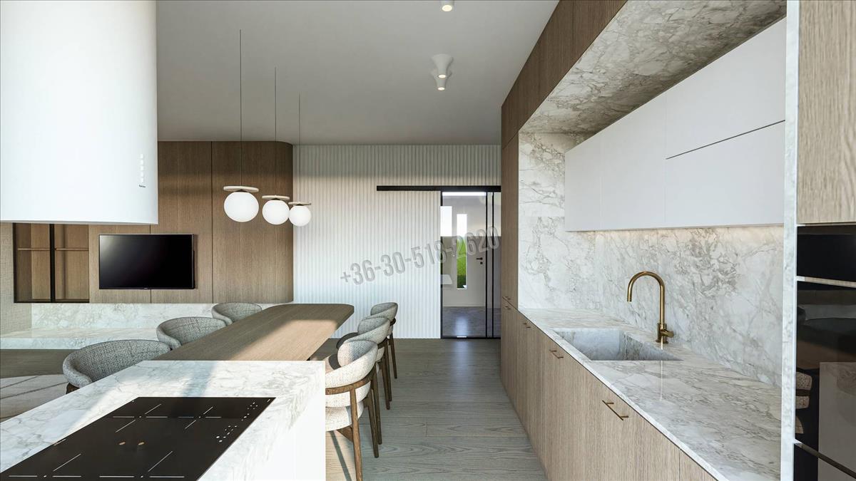 A hasznos alapterület 144, 8 négyzetméter, amelyet átgondolt, családbarát elrendezés jellemez. a terek kialakítása lehetővé teszi egy tágas, amerikai konyhás nappali, négy különnyíló szoba, két fürdőszoba, külön mellékhelyiség, előtér és gépészeti helyiség kényelmes használatát. Az ingatlanhoz dupla garázs tartozik, valamint egy hangulatos, fedett tornác is helyet kapott, amely ideális a nyugodt pihenéshez és kikapcsolódáshoz.