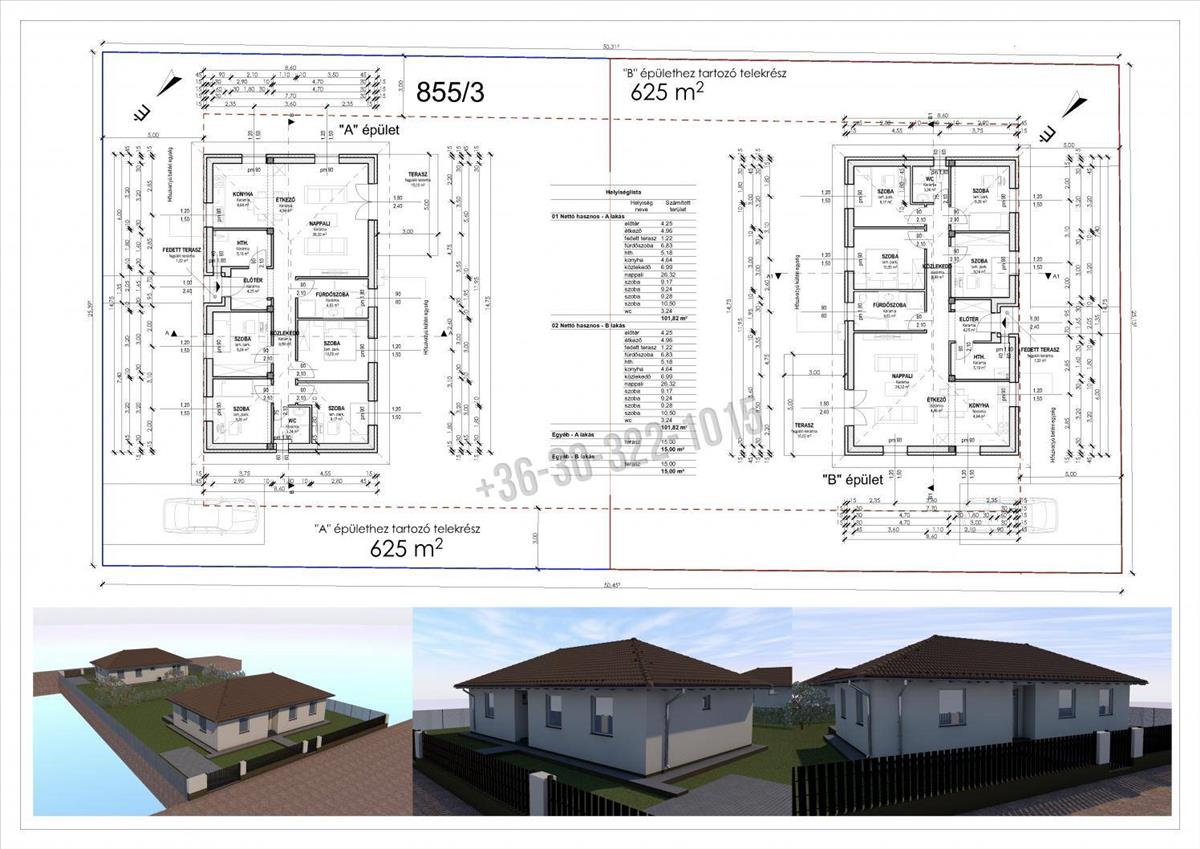 A 1250 nm -es közművesített (víz, villany, csatorna, gáz) telken 2 darab nettó 102 nm -es, egyszintes, négy hálószobás + amerikai konyhás nappalival rendelkező családi ház épül, 625 nm saját telekhányaddal. a tágas lakótérben 4 hálószoba, nappali, konyha, fürdőszoba és vendég toalett kerül kialakításra, és egy 15 nm -es terasz is tartozik hozzá.