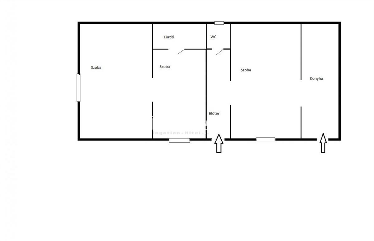 Ingatlanunk 2 szobából, egy félszobából, előtérből, konyhából, fürdőből, wc-ből áll.