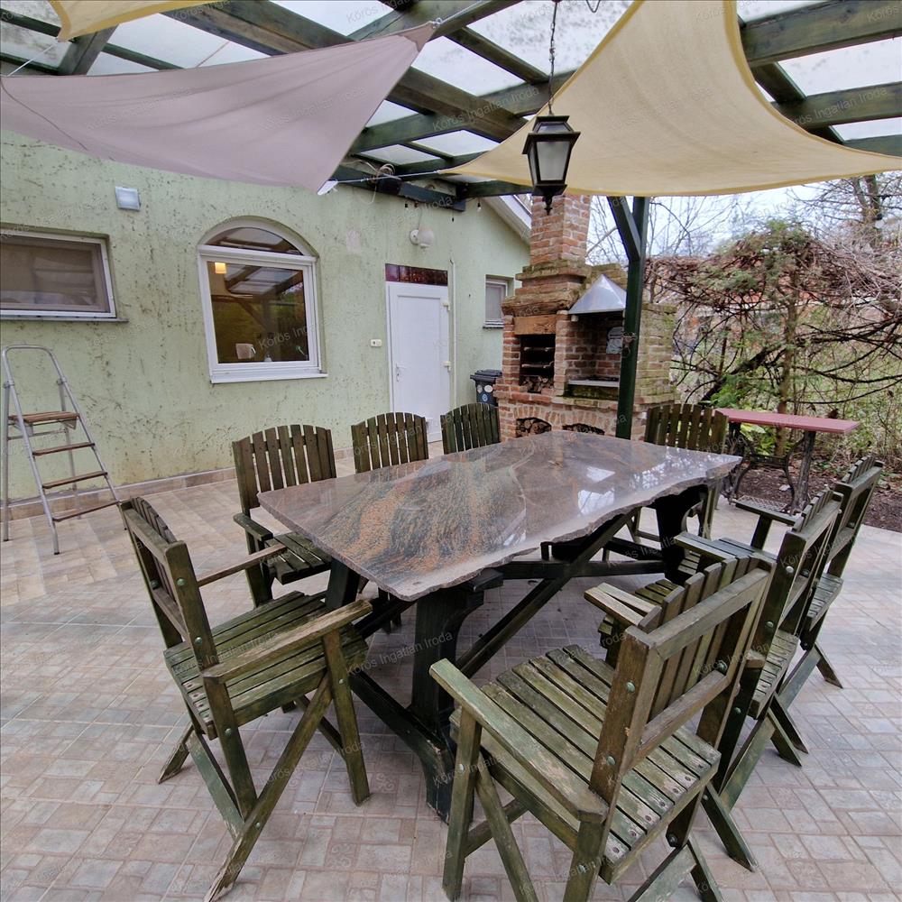 Az ingatlan belső udvarában fedett-burkolt terasz, sarkában épített pizzasütő kemence, grillező funkcióval, az előkertben parkolásra alkalmas térkővel kirakott placc szolgálja kényelmünket. Utcafronton szekcionált nagykapval ellátott 3D-s kerítés került kialakításra. a telek mérete: 511m2