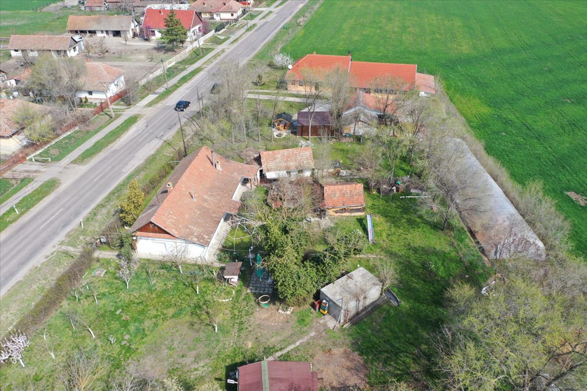 Udvarán gyümölcsfák, melléképületek, két garázs és górék találhatóak. a telekre való bejutás két nagykapun is megoldott.