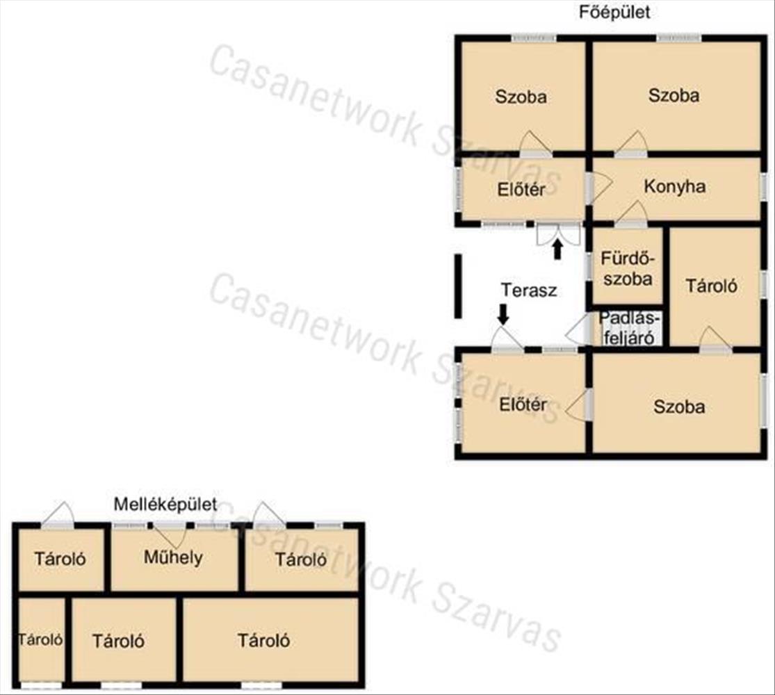 - a főépület 99 m2, 1968-ban vályogból és téglából épült, Kádár-kocka jelleg.