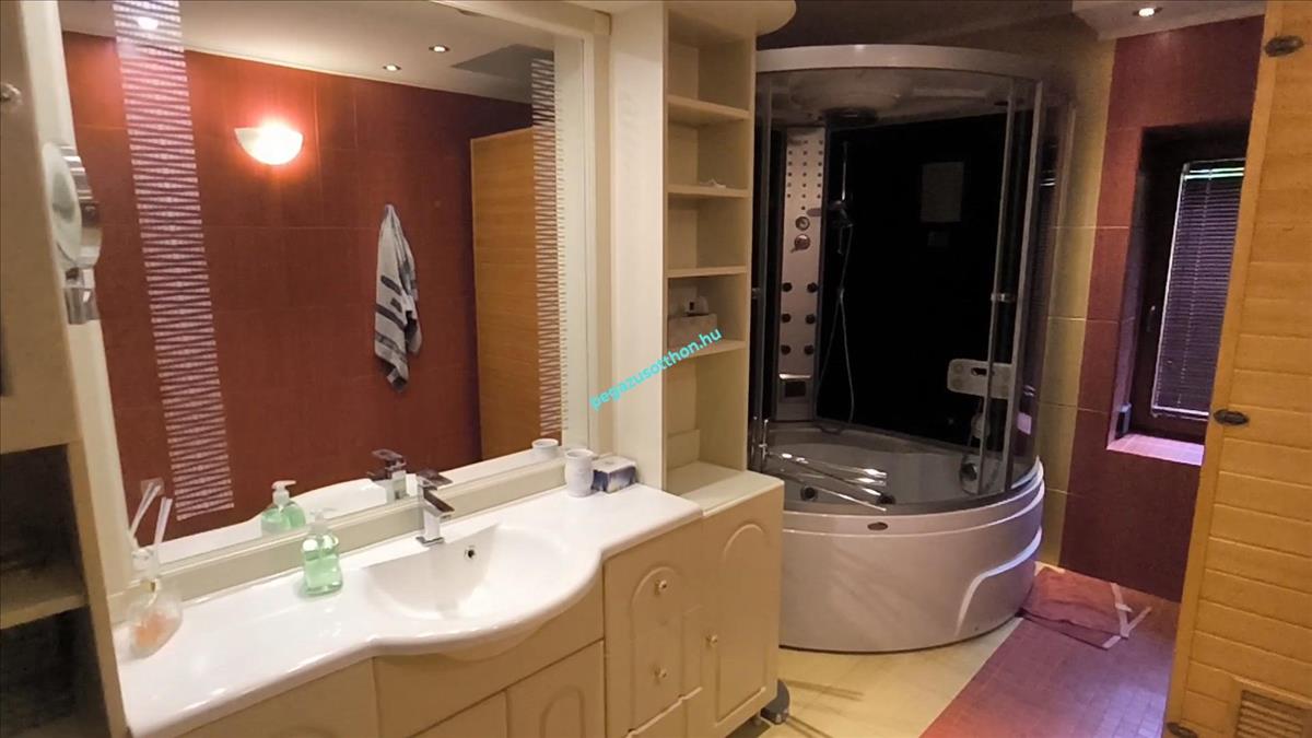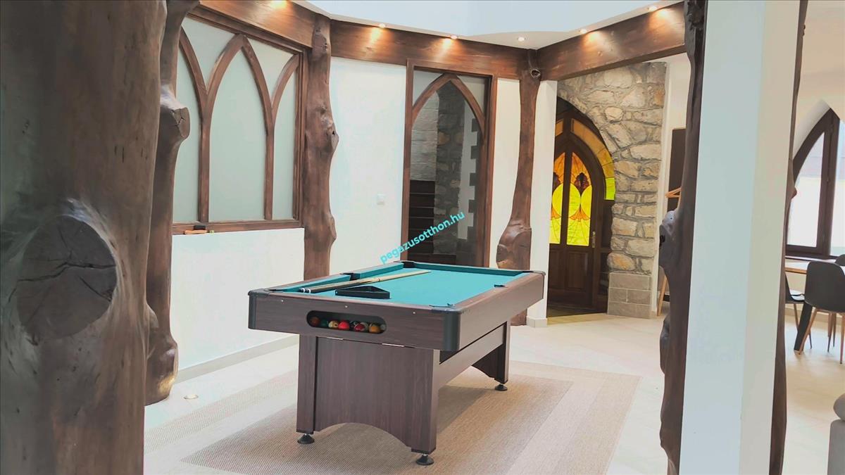 Az ingatlanhoz 12 méteres medence tartozik, ami jelen pillanatban fedve van, de kialakították a gépészethez szükséges teret.