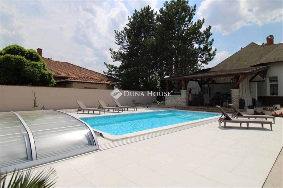 A házhoz egy sós vizű, lefedhető medence is tartozik, amely inverteres fűtéssel rendelkezik. a medence vízminőségét és működését egy különálló gépház biztosítja, amely a tisztító- és keringetőrendszert kezeli. a kert rendezett, automata öntözőrendszerrel, konyhakerttel és automata fűnyíróval felszerelt.
