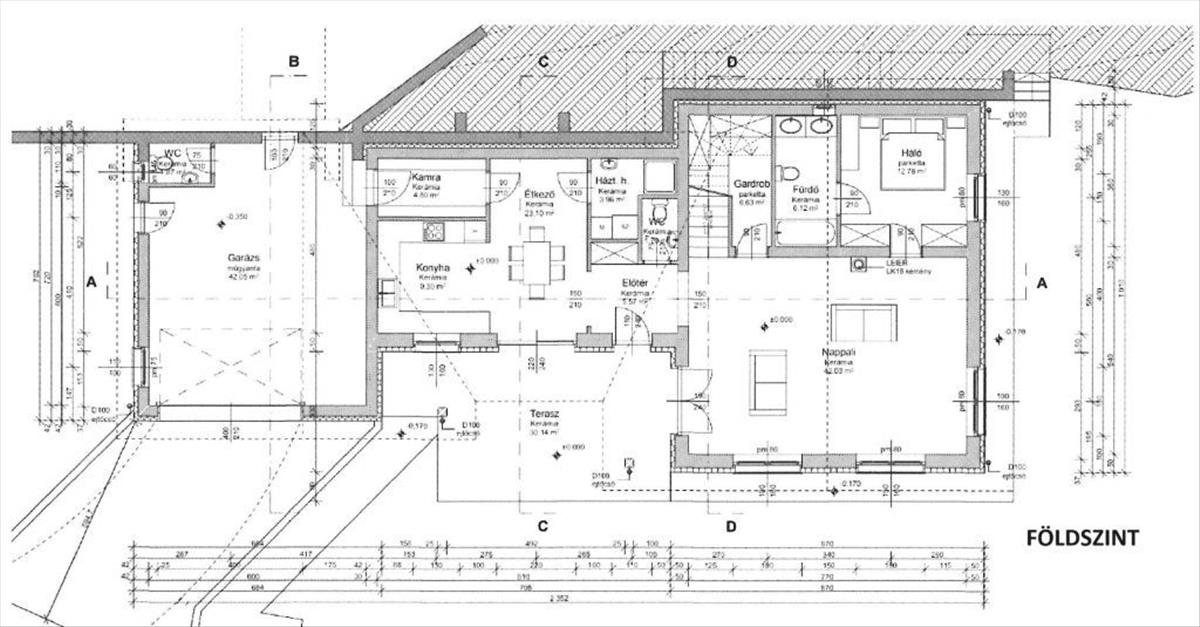 FÖLDSZINT (121, 6 nm ) + fedett terasz (30, 14 nm ) + garázs, wc (43, 92 nm ):